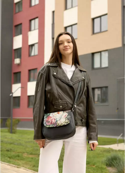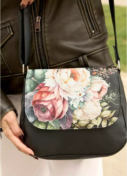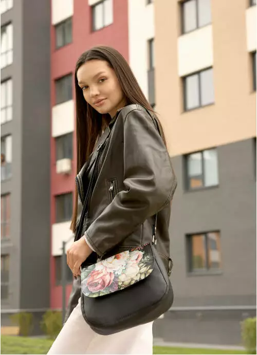 Жіноча сумка Кросбоді Sambag Rose чорна з квітковим принтом