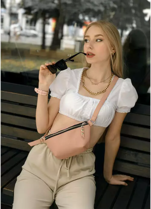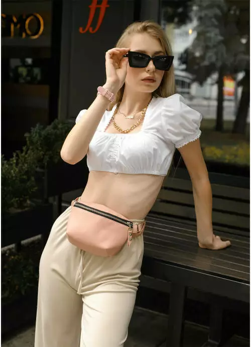 Жіноча сумка на пояс бананка Sambag Polo пудра