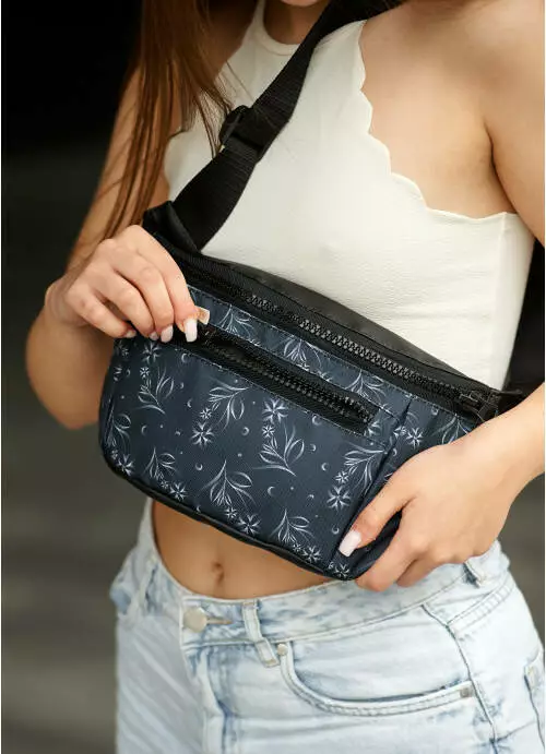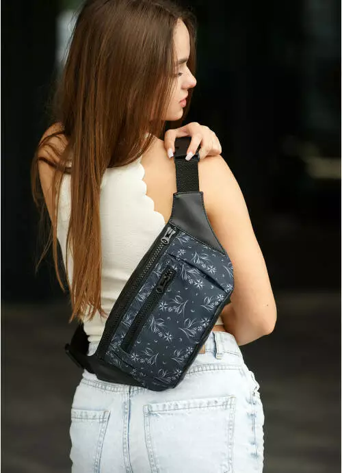 Жіноча сумка на пояс бананка Sambag Tirso Max MSH чорна з принтом