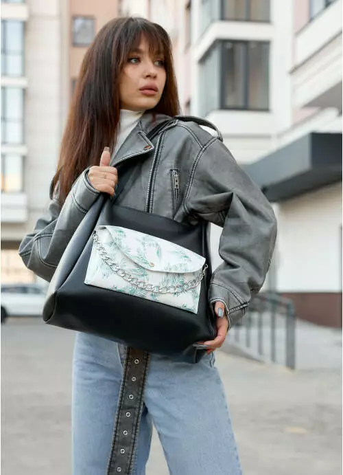 Жіноча сумка Sambag HOBO Bliss чорна принт "Palm"