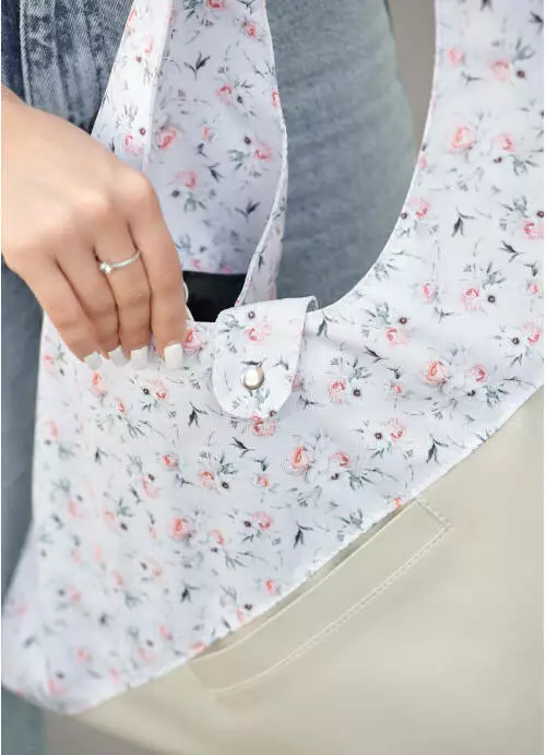 Жіноча сумка Sambag HOBO M біла з квітковим принтом