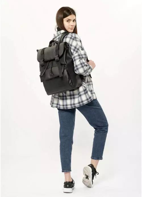 Жіночий рюкзак ролл Sambag Loft Zard чорний з клапаном