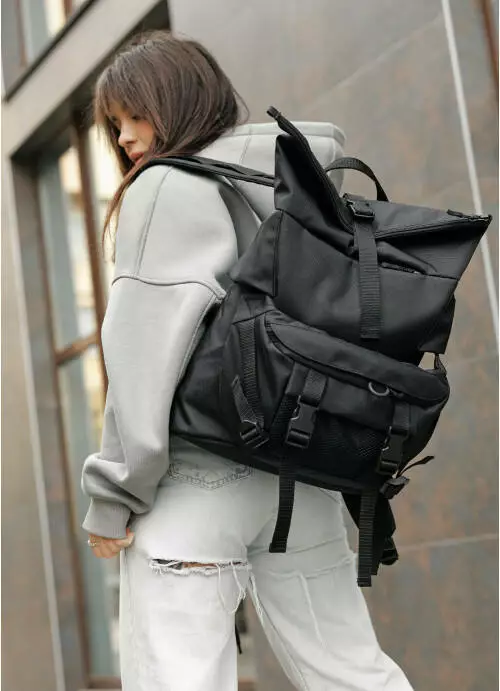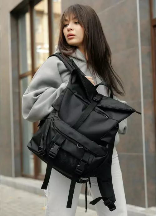 Жіночий рюкзак ролл Sambag RollTop Double тканевий чорний