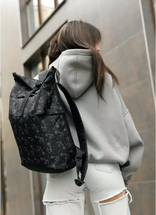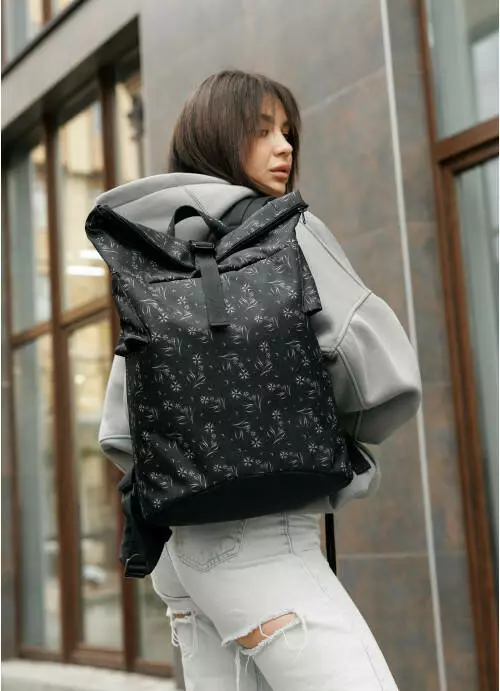 Жіночий рюкзак ролл Sambag RollTop KZN чорний принт