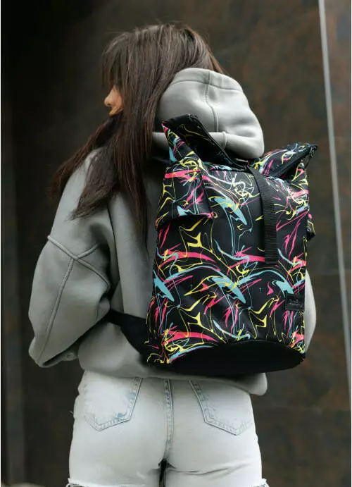 Жіночий рюкзак ролл Sambag RollTop KZN чорний принт "ABSTRACT"