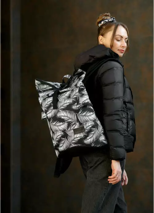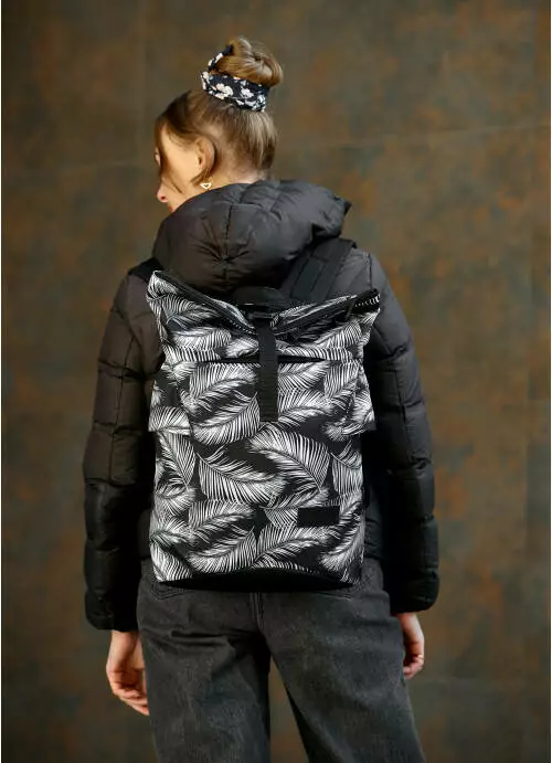 Жіночий рюкзак ролл Sambag RollTop KZN чорний принт Palm