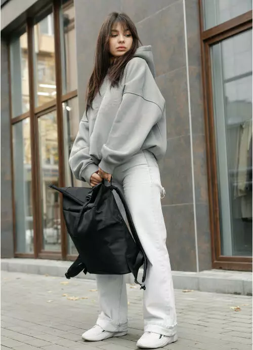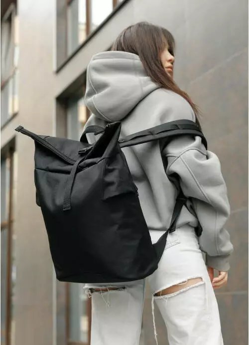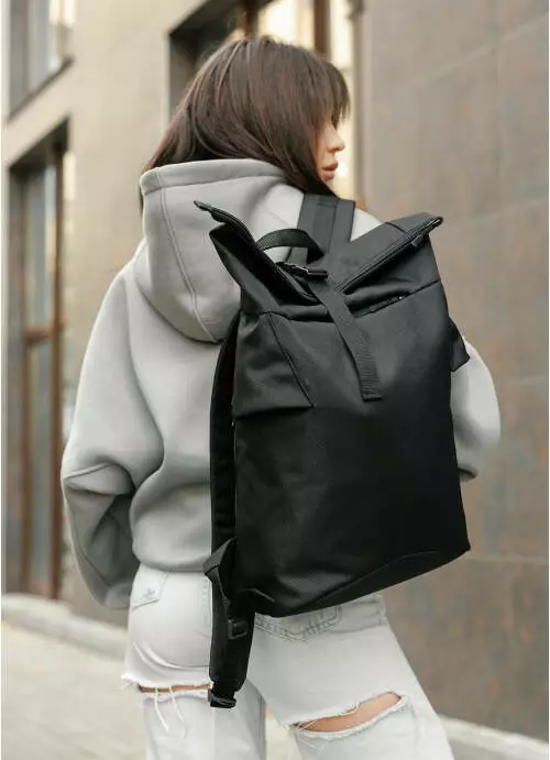Жіночий рюкзак ролл Sambag RollTop KZN чорний тканевий