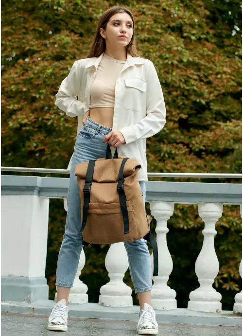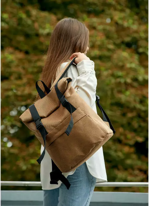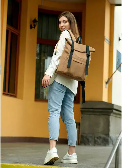 Жіночий рюкзак ролл Sambag RollTop Milton коричневий тканевий