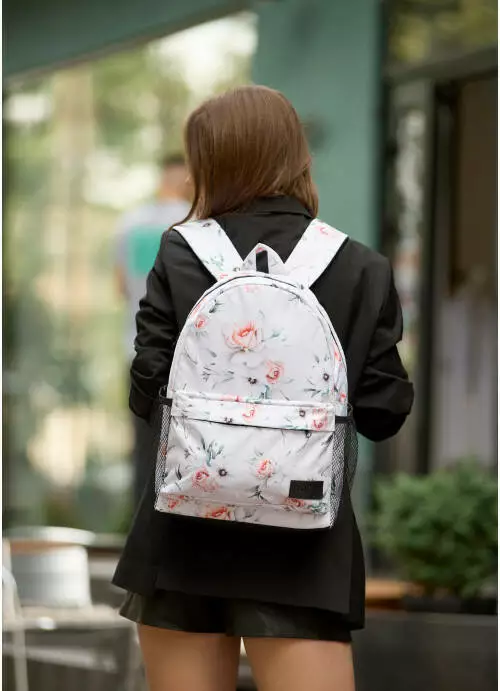 Жіночий рюкзак Sambag Brix PJT з квітковим білим принтом