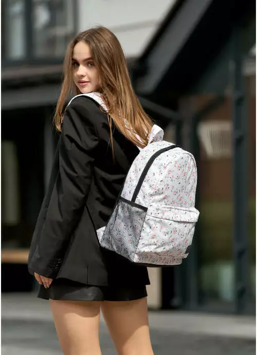 Жіночий рюкзак Sambag Brix з квітковим білим принтом