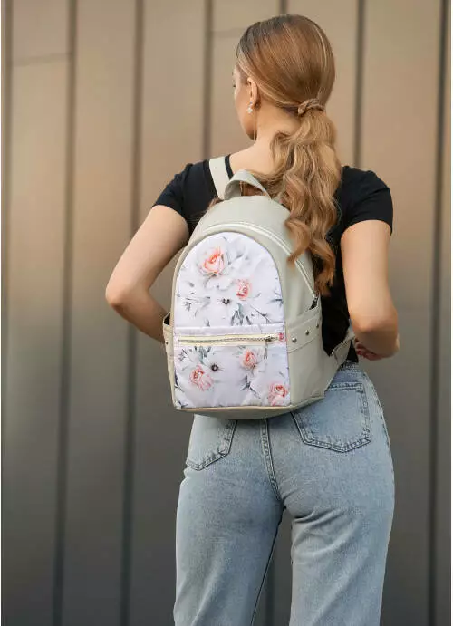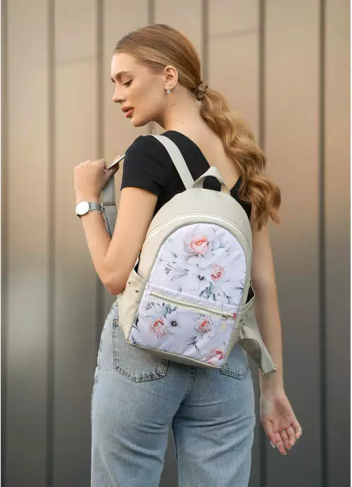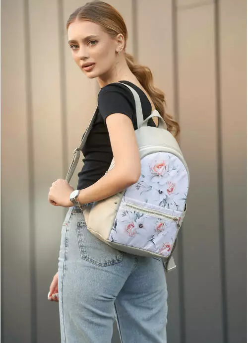 Жіночий рюкзак Sambag Dali з квітковим білим принтом