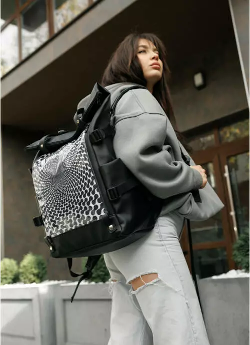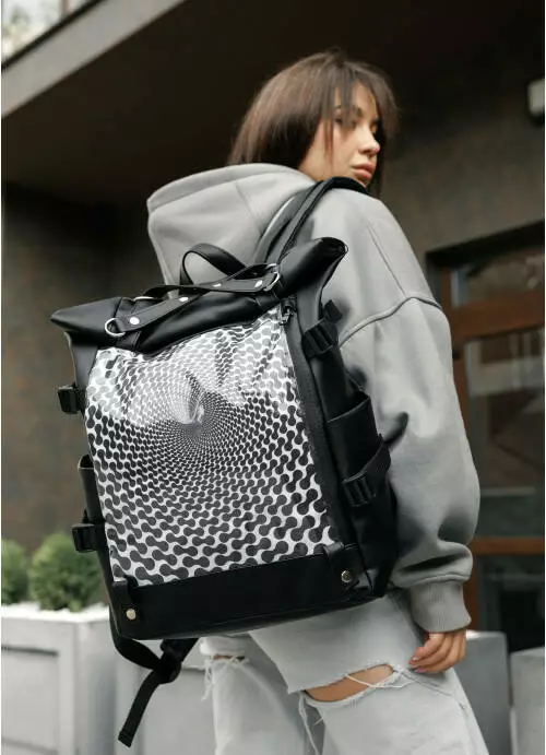 Жіночий рюкзак Sambag RollTop Hacking чорний принт "illusion"