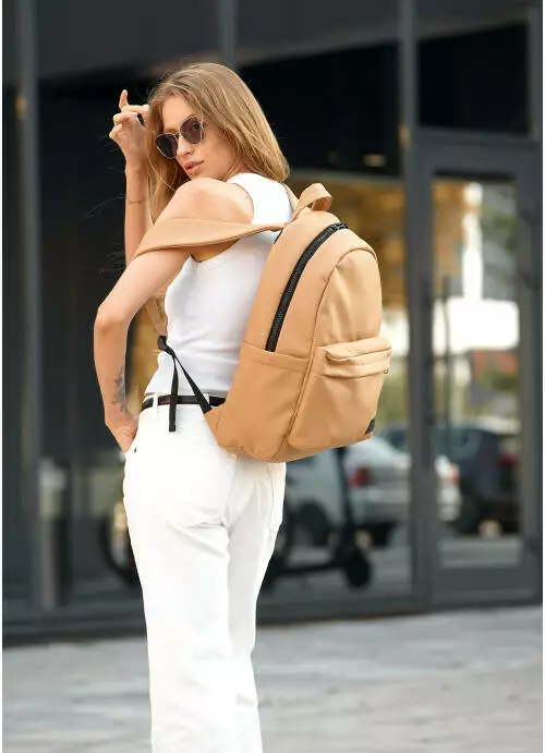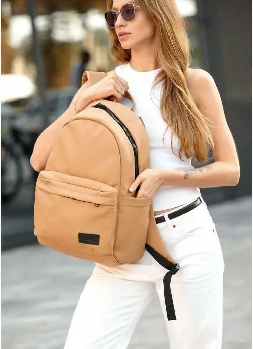 Функциональность. Снаружи рюкзака спереди один большой карман на молнии. Внутри основного отделения рюкзака есть отдельное отделение под ноутбук до 14 дюймов (зависит от пропорций экрана и рамок вокруг него – при заказе уточняйте размер своего гаджета). С другой стороны середины карман на молнии и одна открытая карман. Снаружи на спинке рюкзака есть два дополнительных кармана на молнии, один из которых под формат А4. По бокам два открытых кармана для разных мелочей.