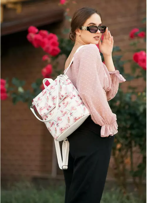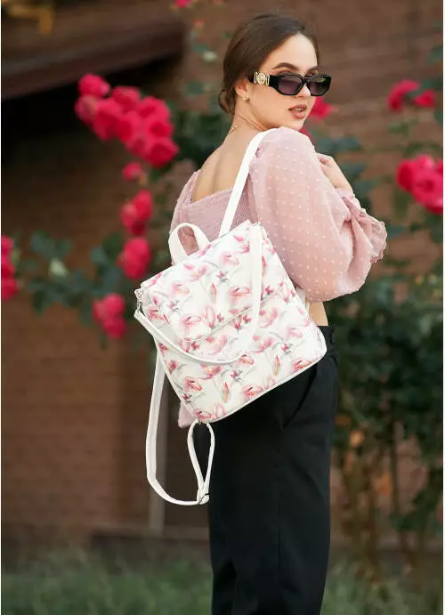 Жіночий рюкзак-сумка Sambag Loft білий з принтом Flowers