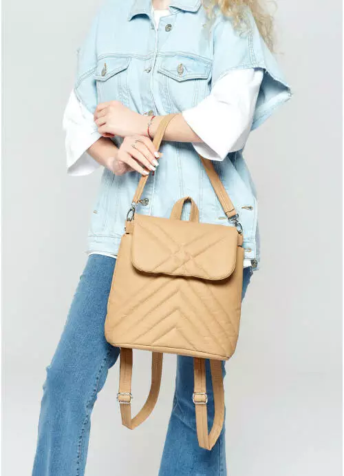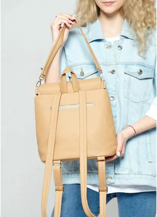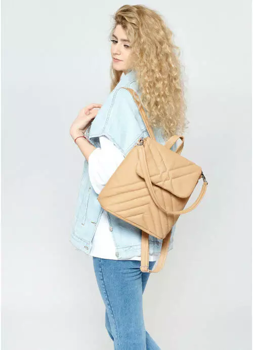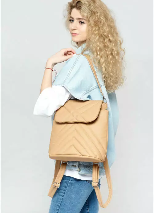 Жіночий рюкзак-сумка Sambag Loft строчений бежевий