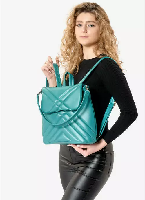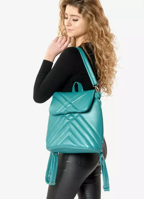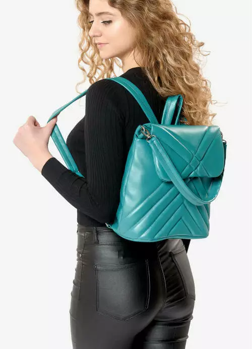 Жіночий рюкзак-сумка Sambag Loft строчений бірюзовий