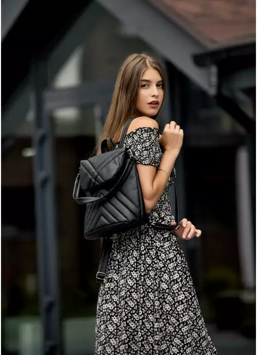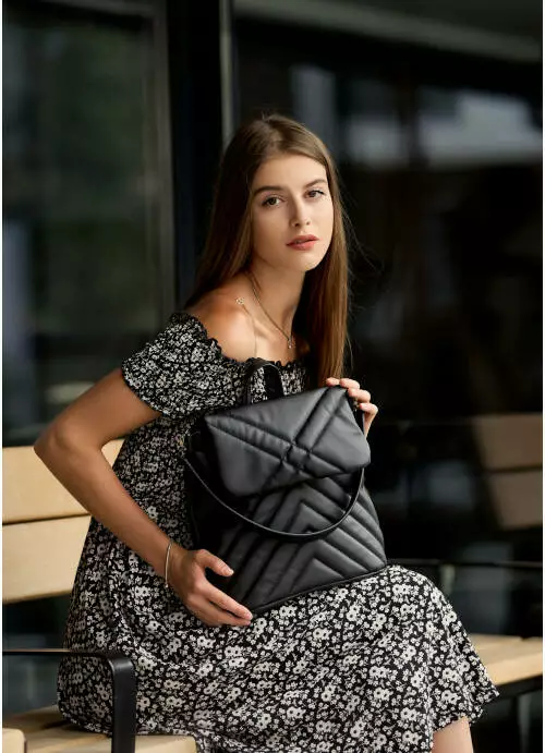 Жіночий рюкзак-сумка Sambag Loft строчений чорний