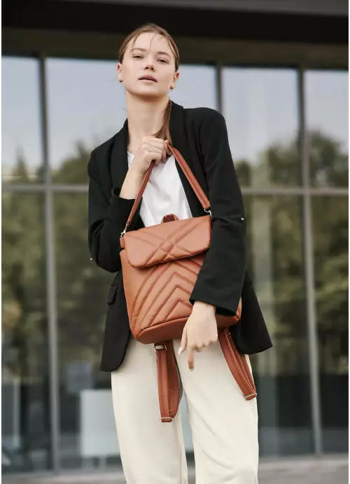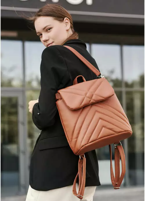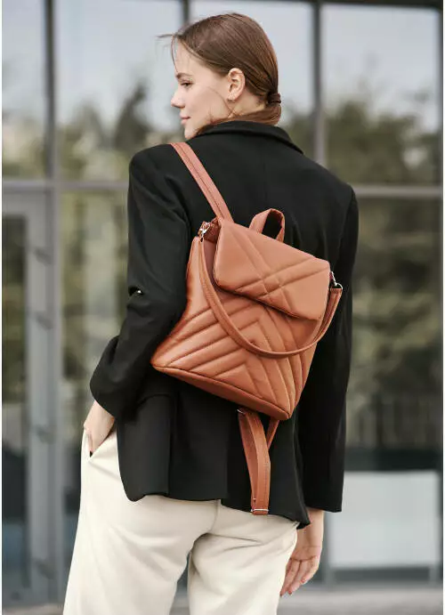 Жіночий рюкзак-сумка Sambag Loft строчений коричневий