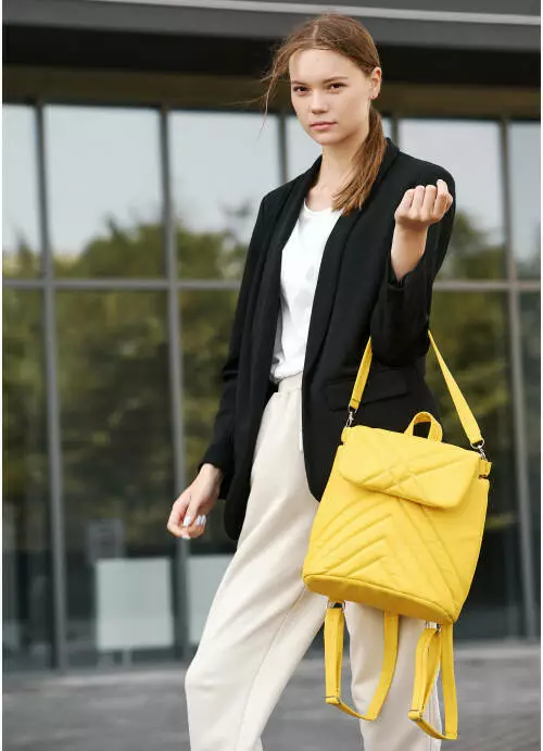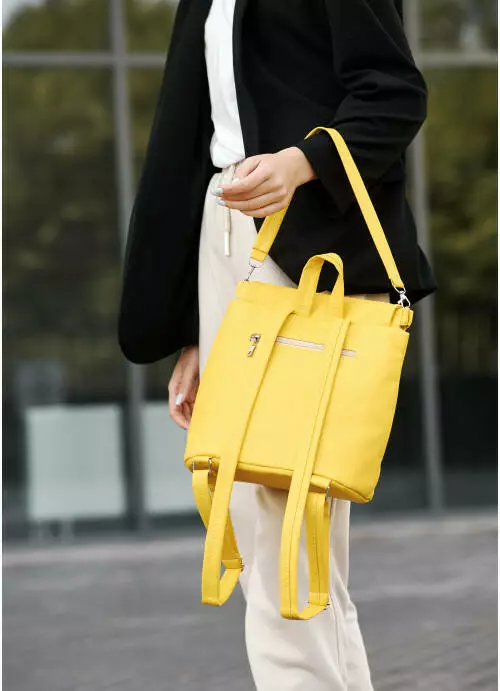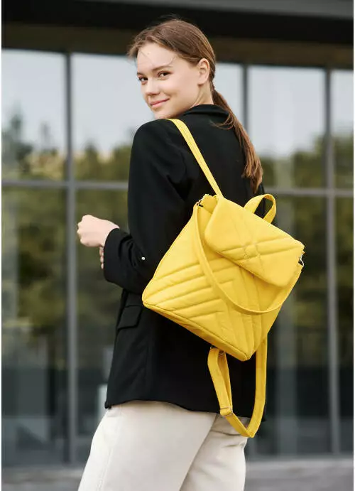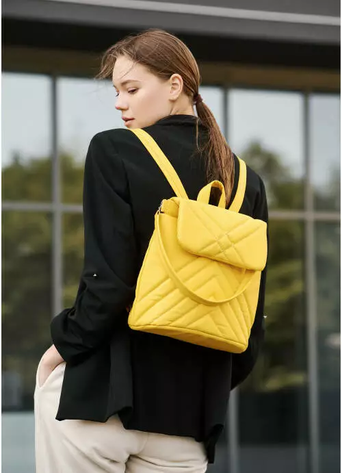 Жіночий рюкзак-сумка Sambag Loft строчений жовтий