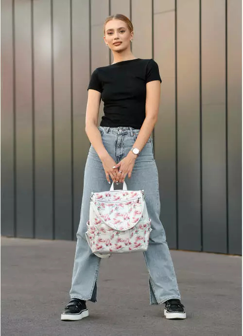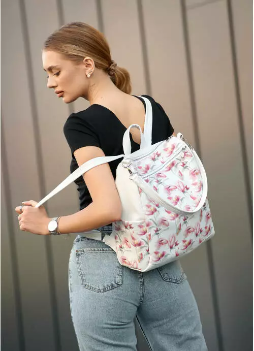 Жіночий рюкзак-сумка Sambag Trinity білий принт "Flowers"