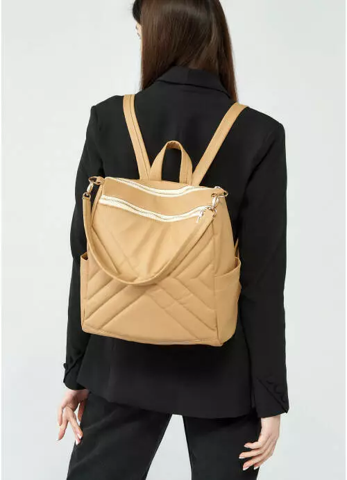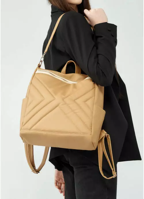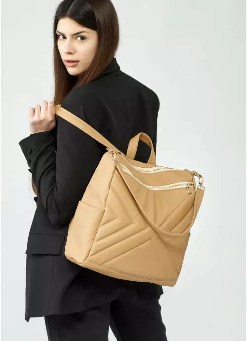 Жіночий рюкзак-сумка Sambag Trinity строчений бежевий