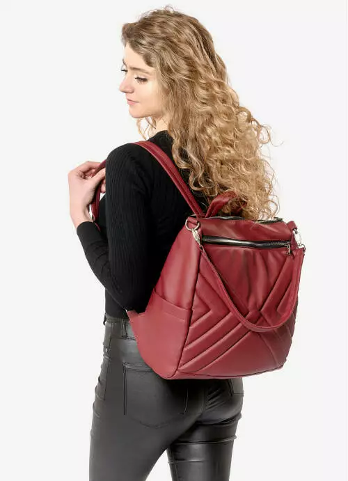 Жіночий рюкзак-сумка Sambag Trinity строчений бордо