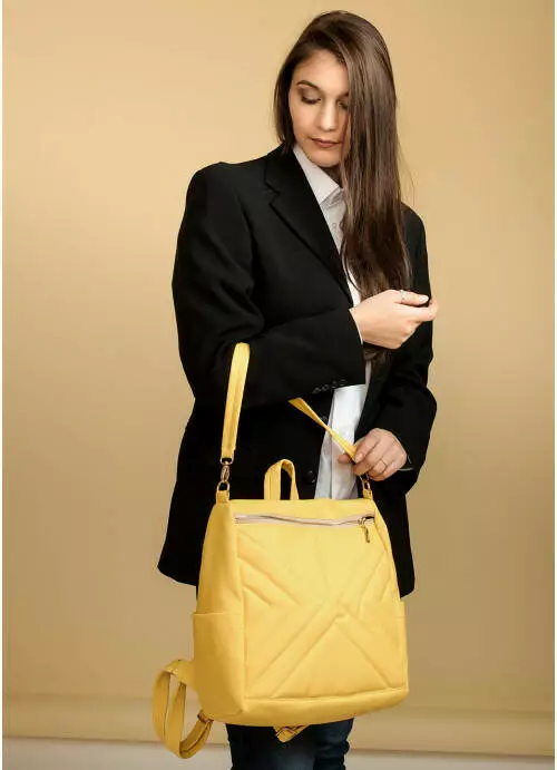 Строчений рюкзак-сумка Sambag Trinity жовтий
